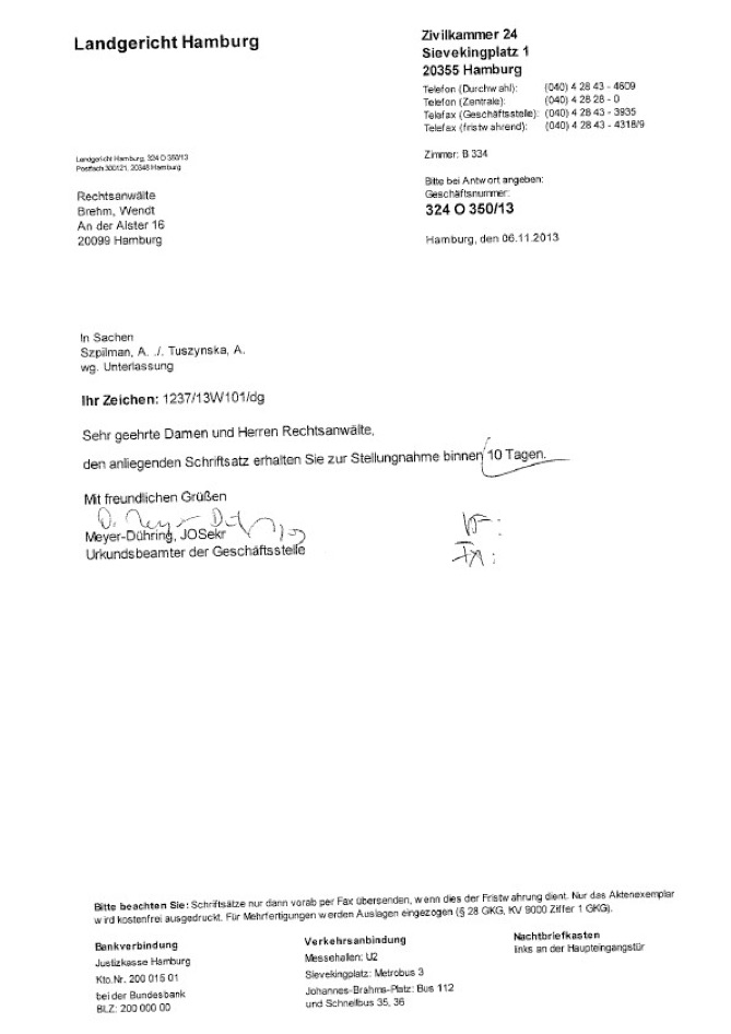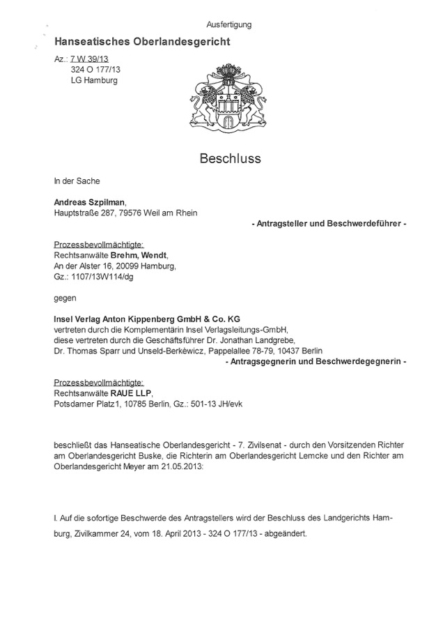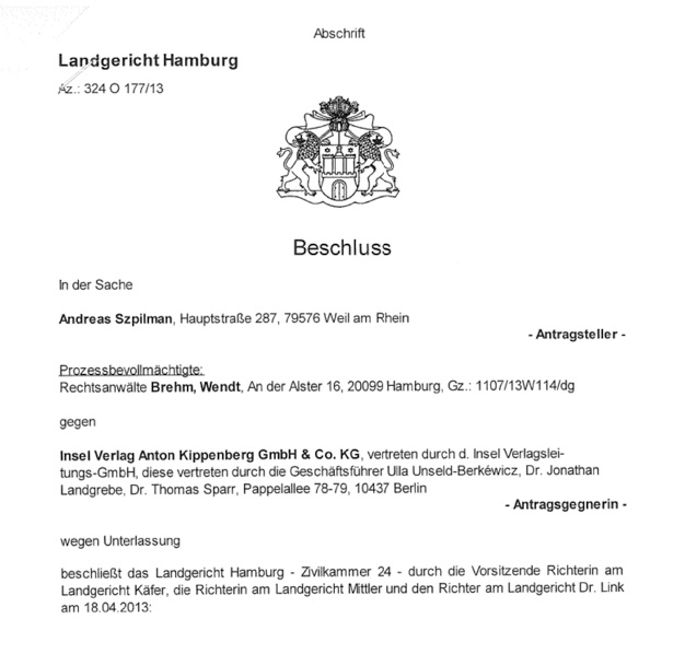 Urteil des Gerichtes HH gegen den Verlag ist hier vorhanden.